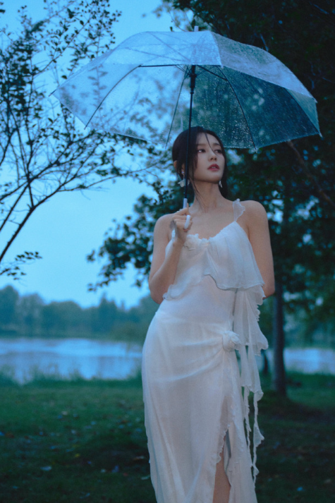 李一桐的雨天氛围感美照,妆造和状态超好的,nice